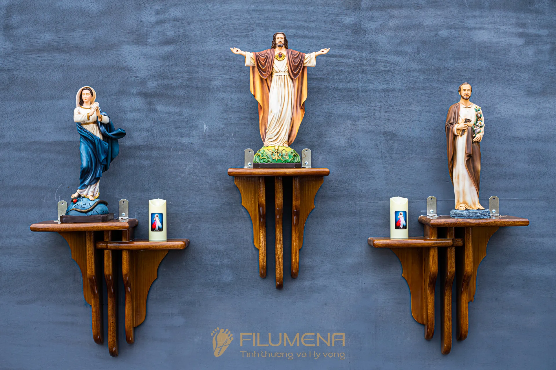 Bàn thờ Chúa BTC3 - Bộ 3 tượng cao 40 cm màu M1 & bệ thờ gỗ BT1