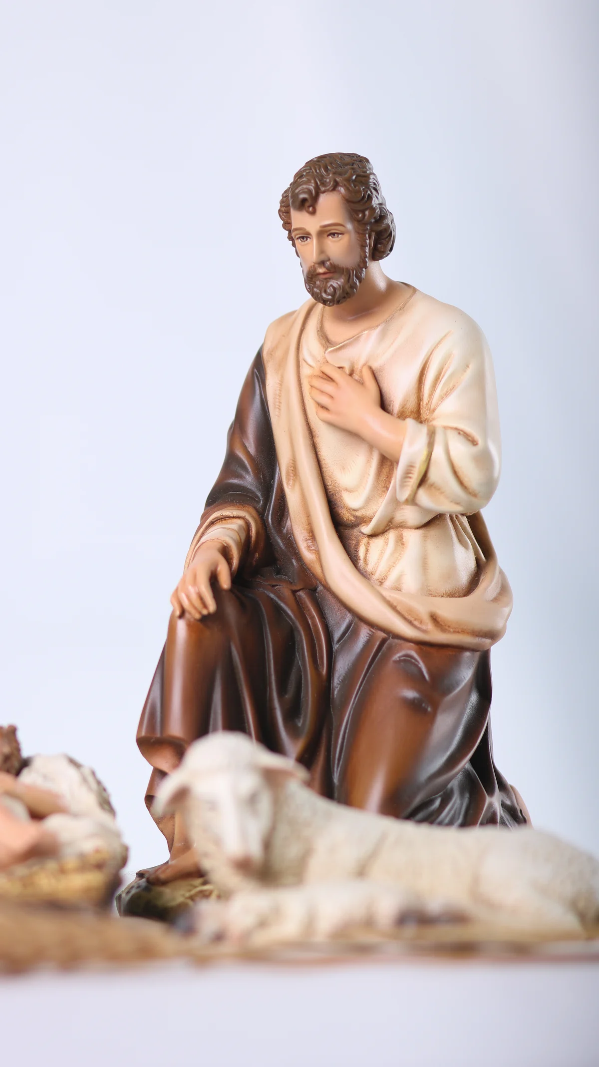 Kích thước bộ: chuẩn 20 cm (tính theo chiều cao Thánh Giuse trong tư thế quỳ).
