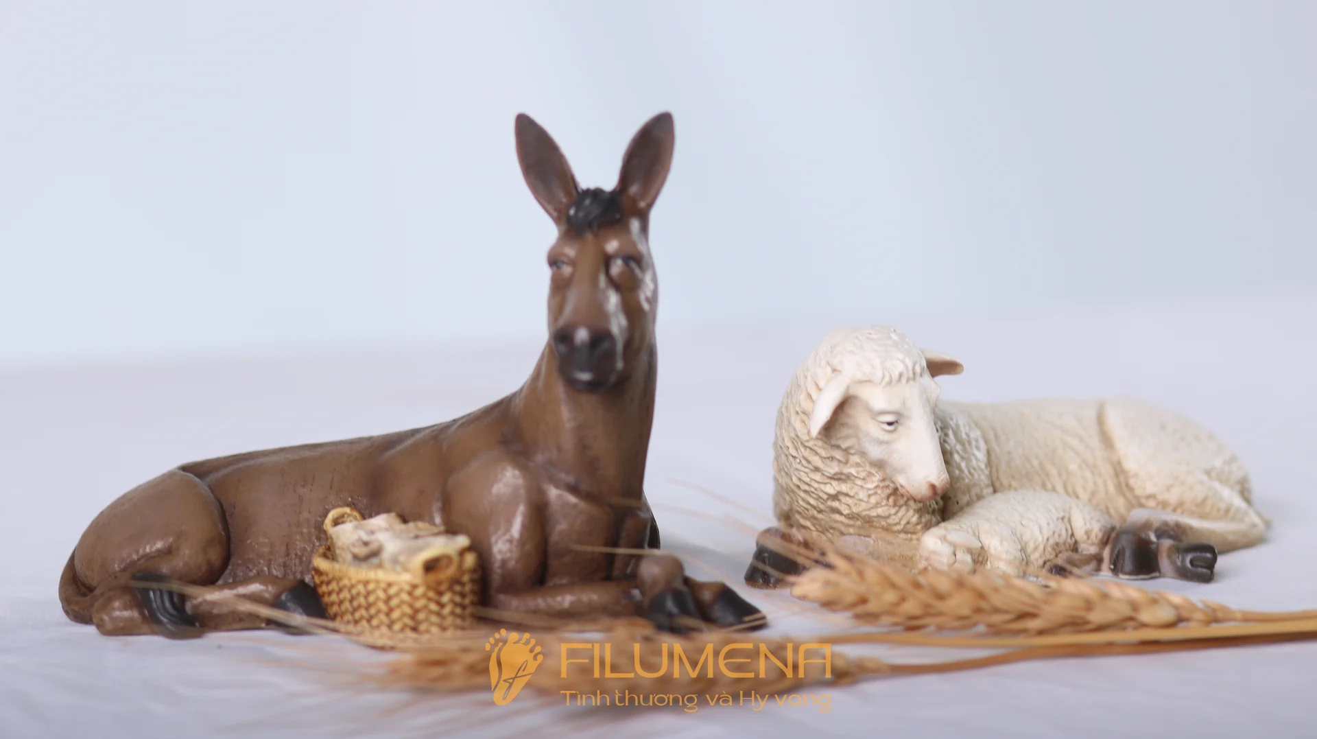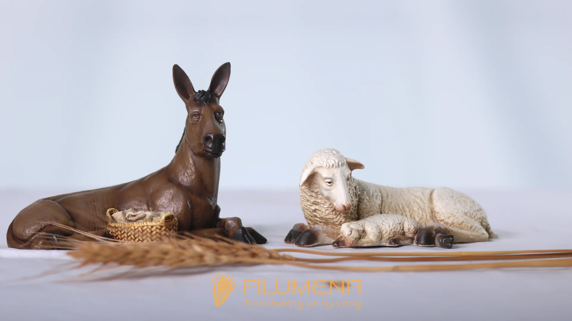 Thông số điểm nhấn: tượng Chúa dài ~10 cm; nôi 12 × 8 cm – tạo trục thị giác rõ ràng tại máng cỏ.