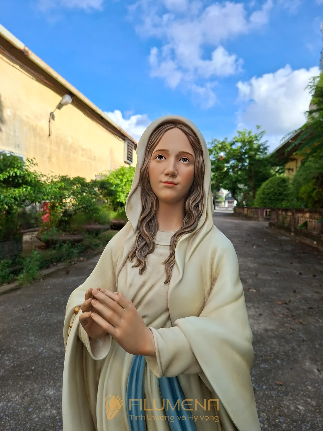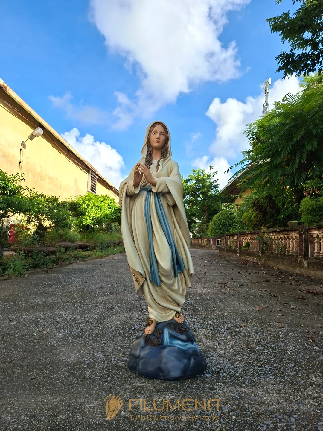 Tượng Đức Mẹ Lộ Đức cao 110 cm phù hợp với đài Đức Mẹ trước nhà hoặc trong phòng khách.