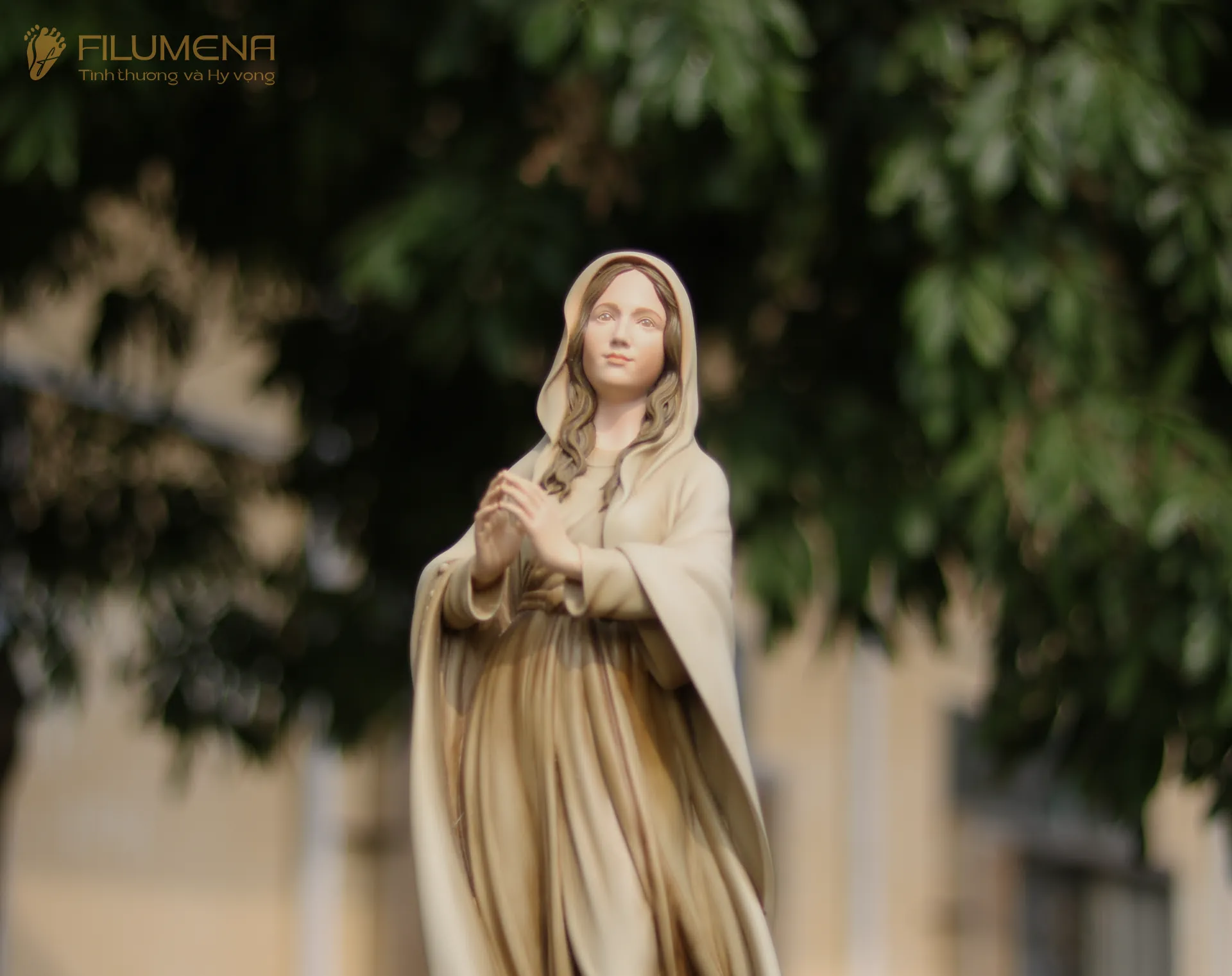 Tác phẩm tượng Đức Mẹ Lộ Đức do Filumena sáng tác năm 2022, đảm bảo lẽ công bằng cần phải có của một tác phẩm tượng thờ Công giáo.