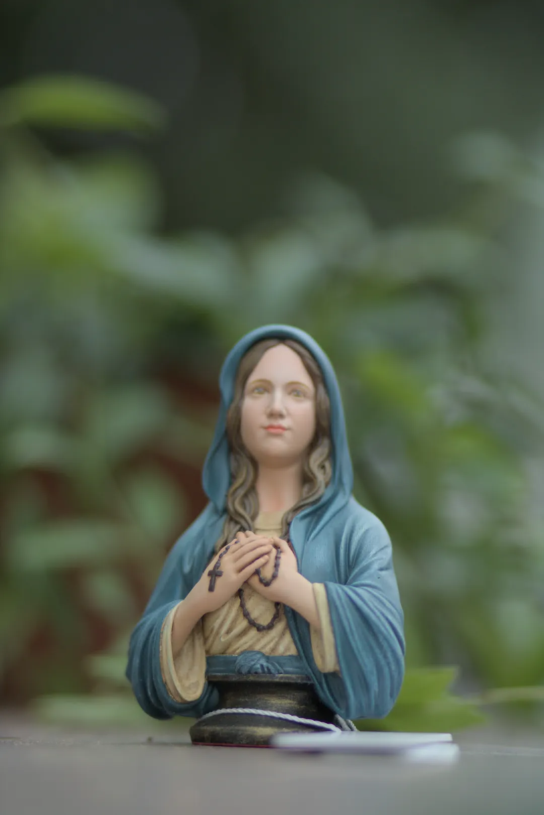 Tượng được vẽ màu thủ công. Tượng cao 10, 15 và 20 cm, bằng chất liệu bột đá, thích hợp cho góc cầu nguyện nhỏ, để bàn, để trên xe ô tô.