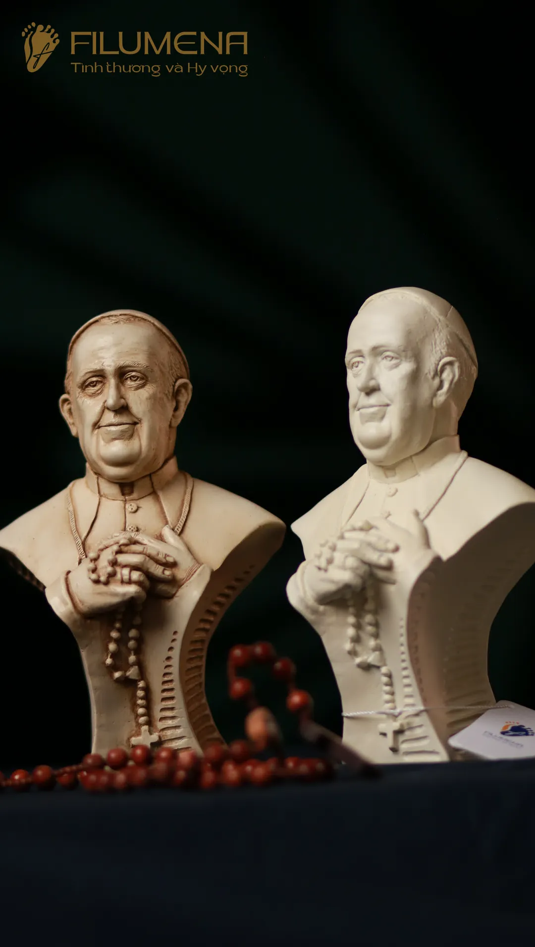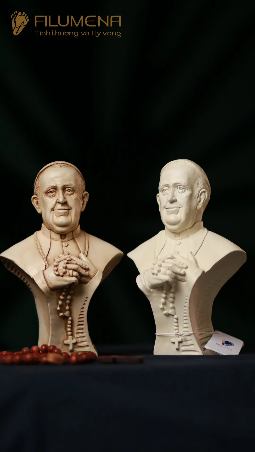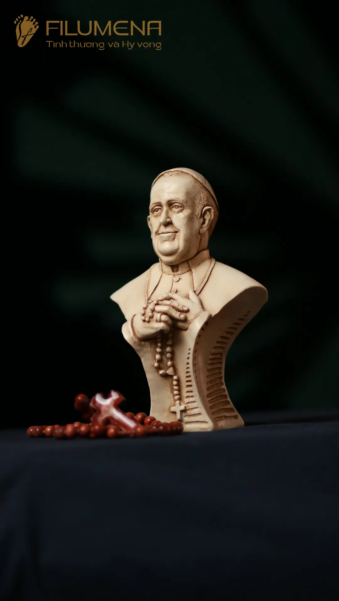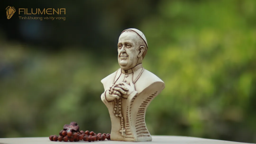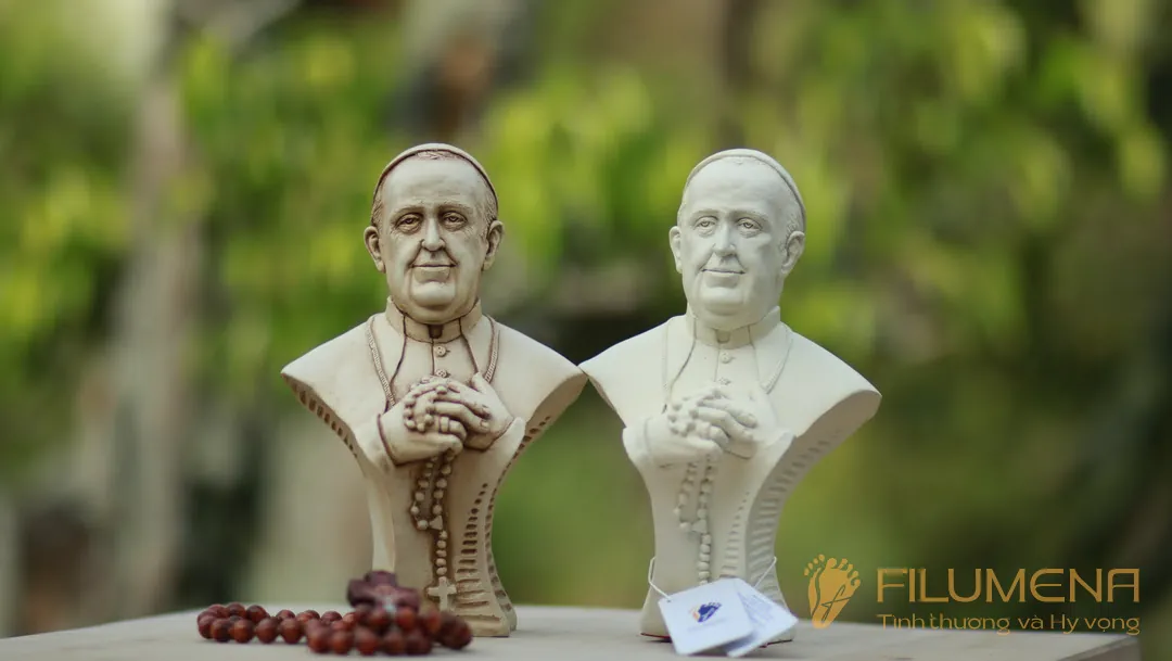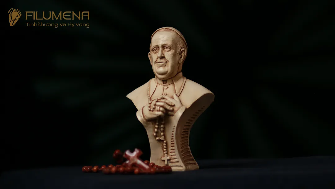 Tượng Đức Thánh Cha Phanxicô được sáng tác bởi anh Giu-se Nguyễn Cao Trí khi Đức Thánh Cha nhập viện đầu tháng 02/2025 với ước mong Đức Thánh Cha vượt qua cơn đau bệnh. Sau khi Đức Thánh Cha Phanxicô về nhà Cha trên trời, Filumena đã tham khảo ý kiến anh Giu-se Cao Trí và cùng nhau đưa tác phẩm này tới với cộng đồng, để mỗi người yêu mến Ngài có thể nhận một tượng về.