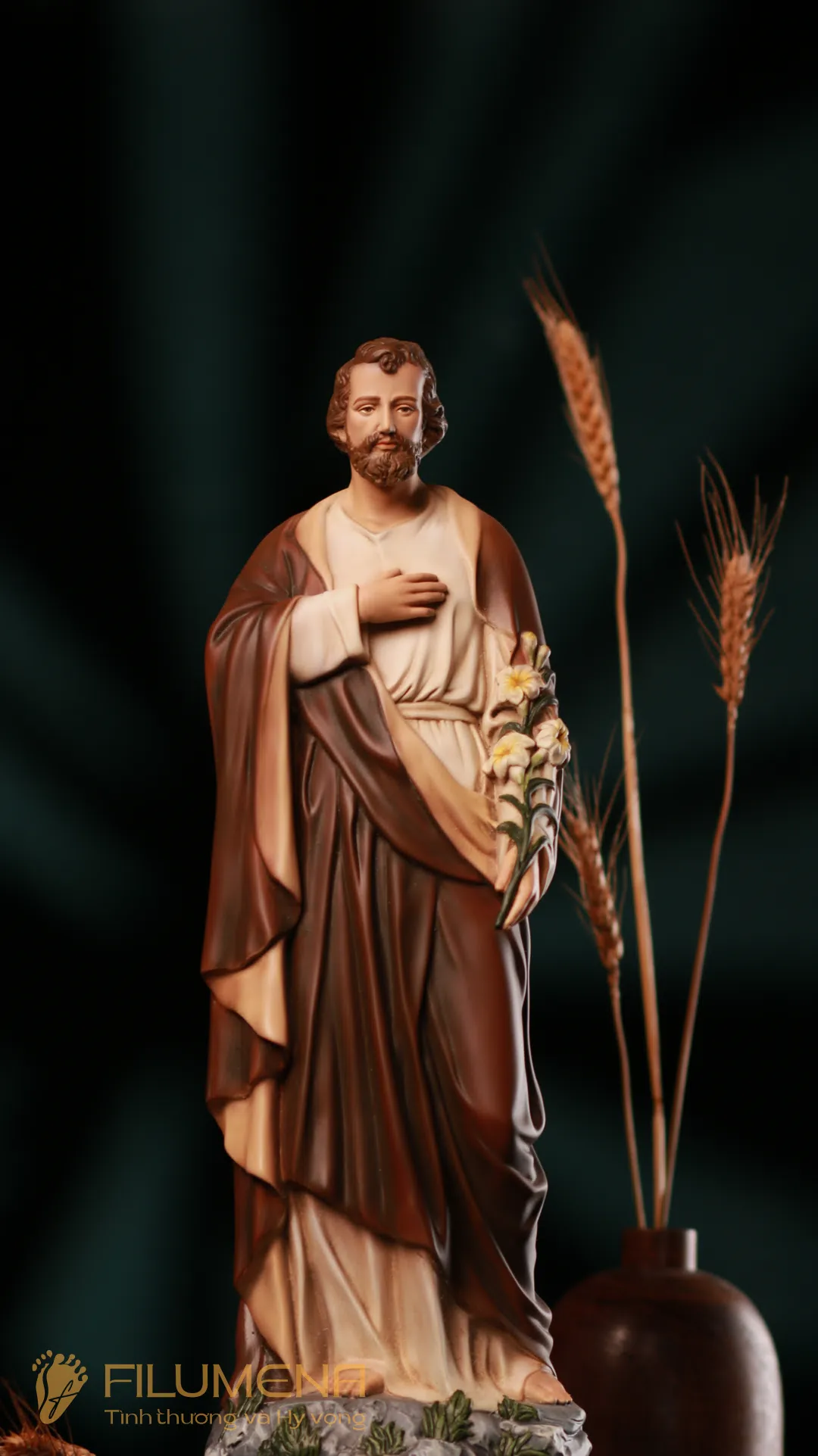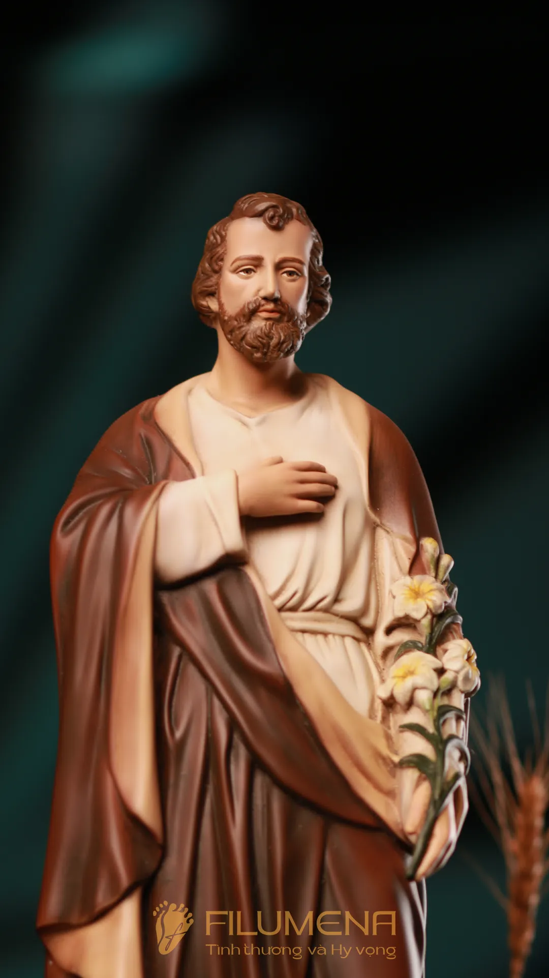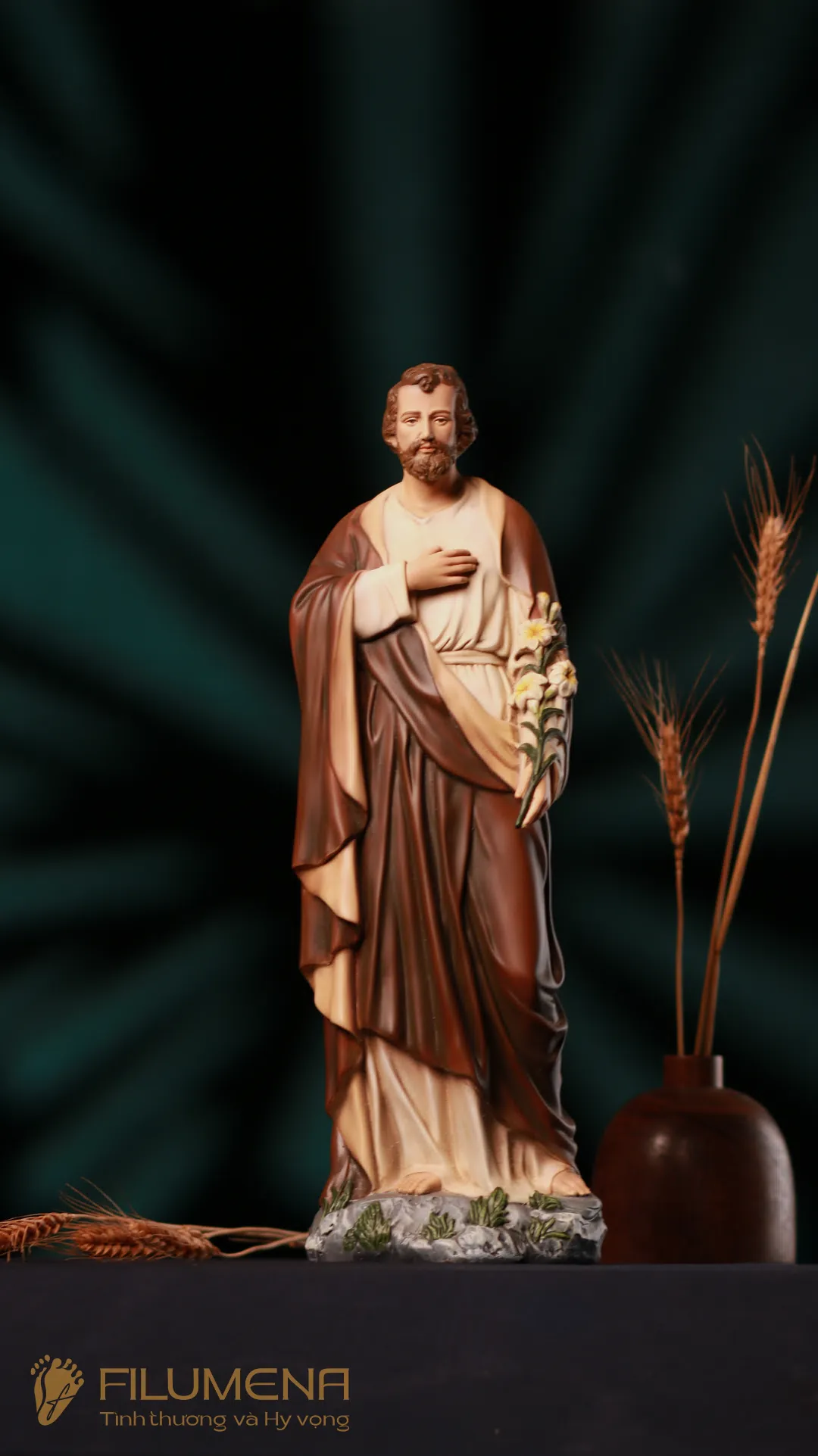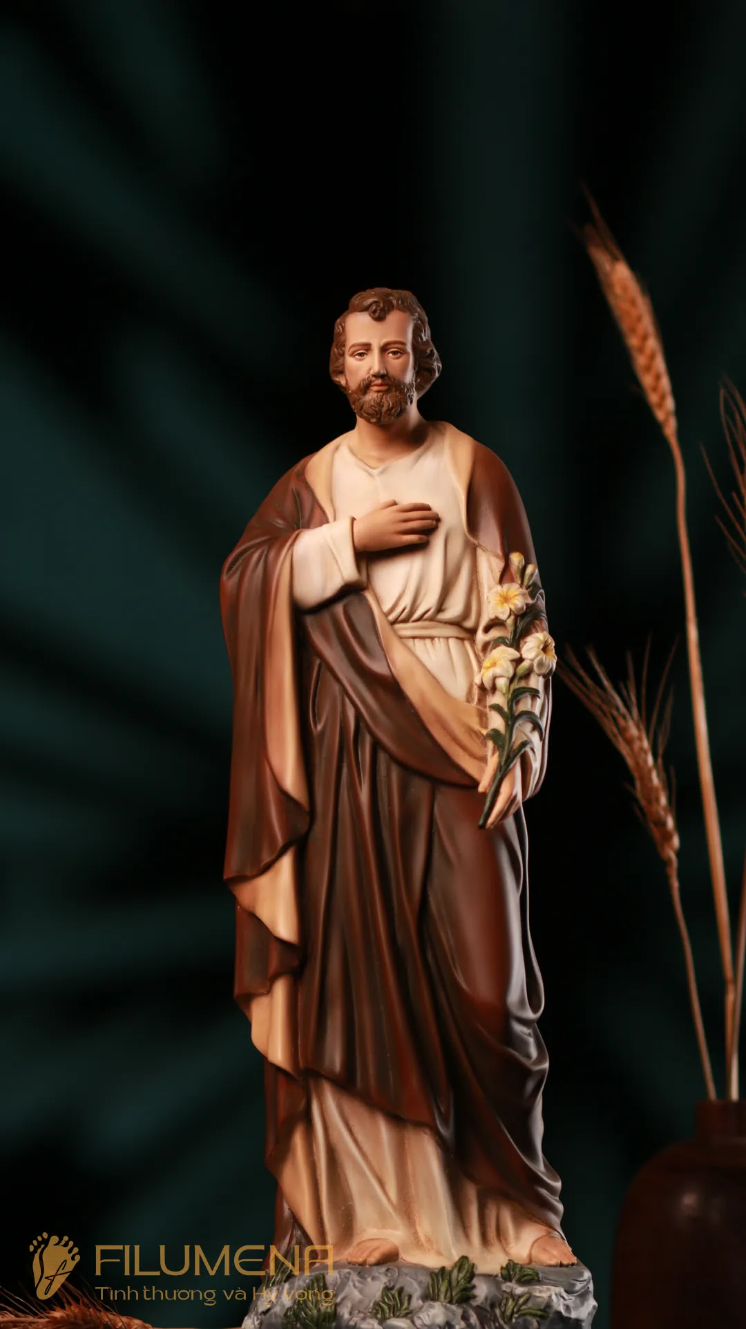 Tượng Thánh Giuse hoa huệ cao 40 cm với áo màu nâu truyền thống.