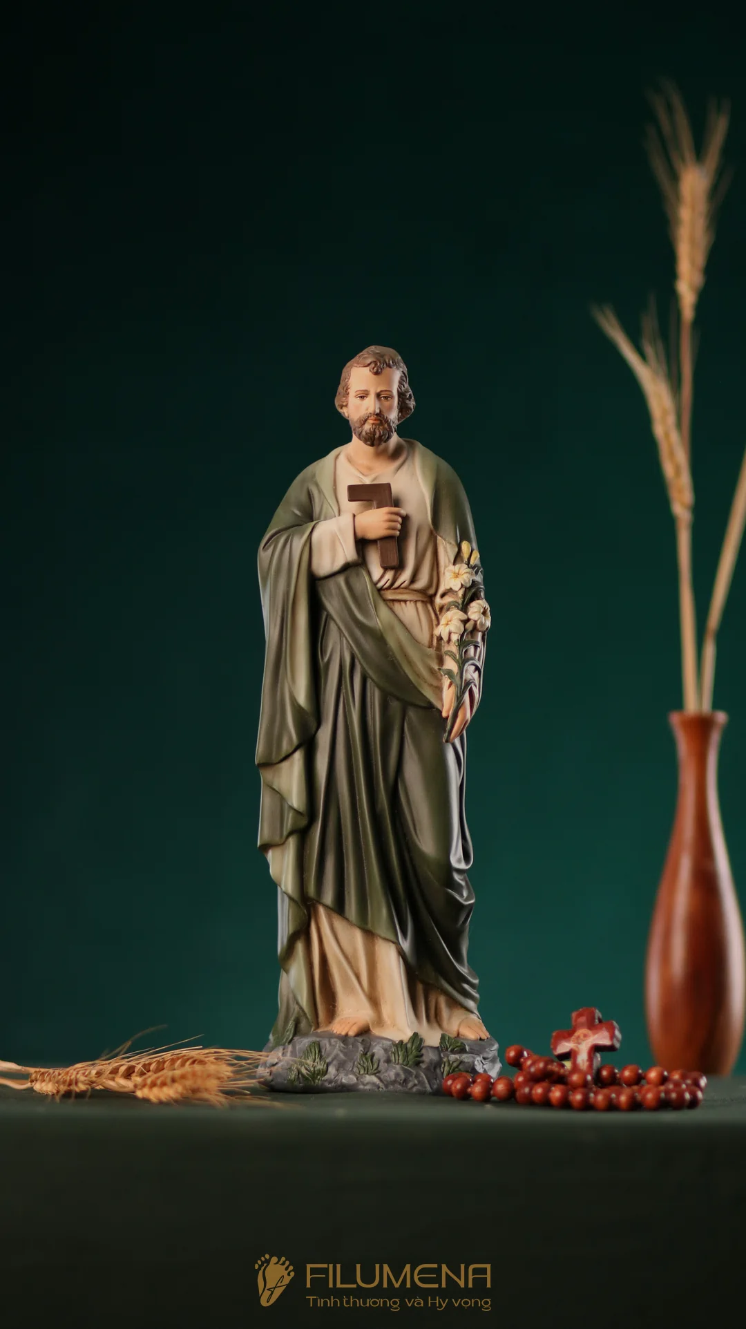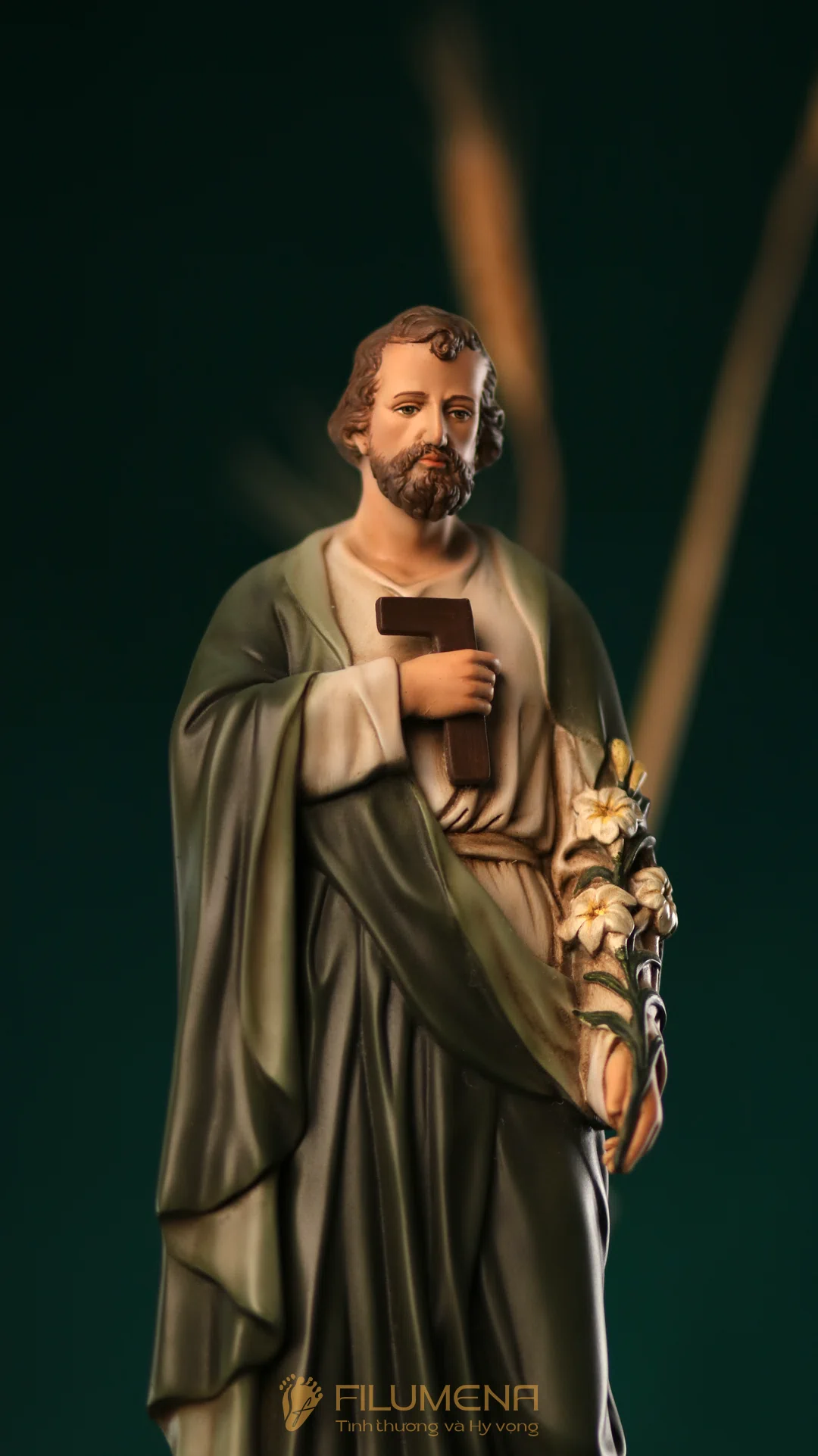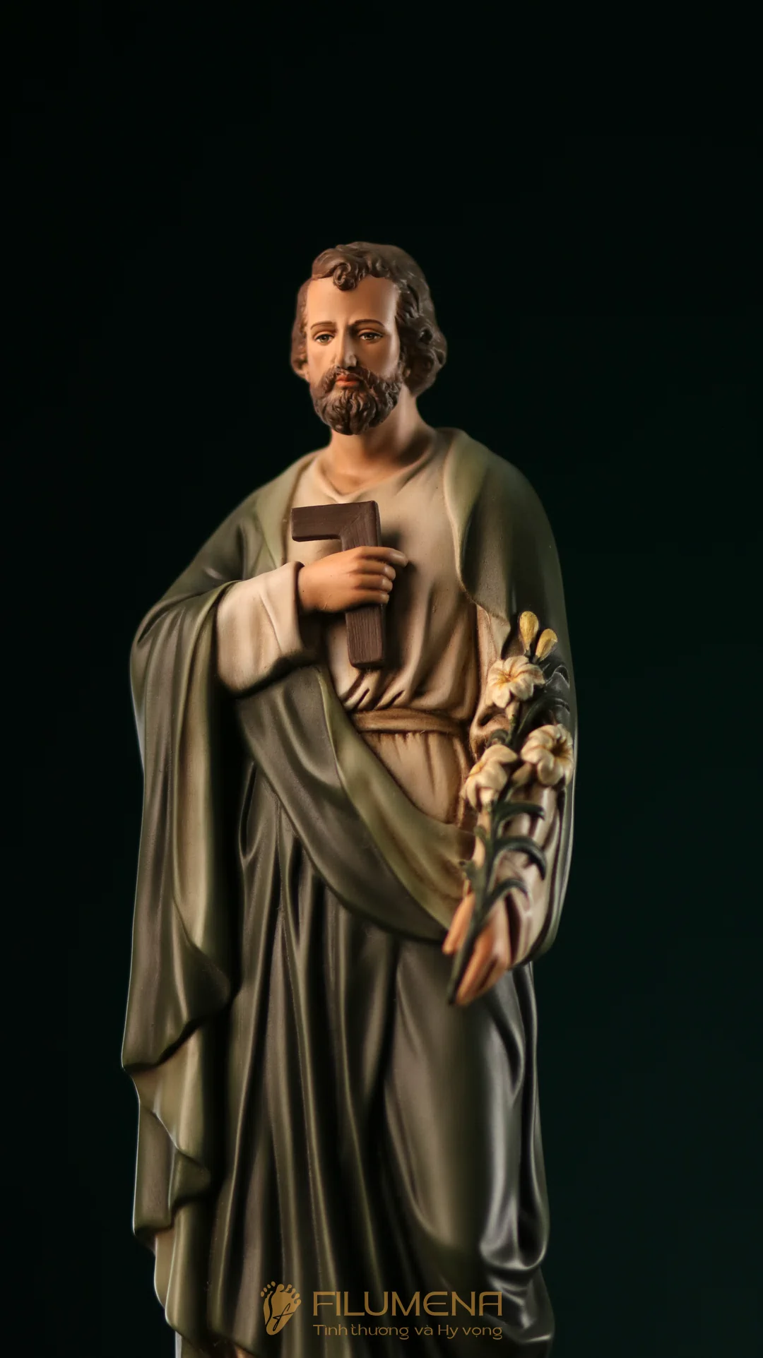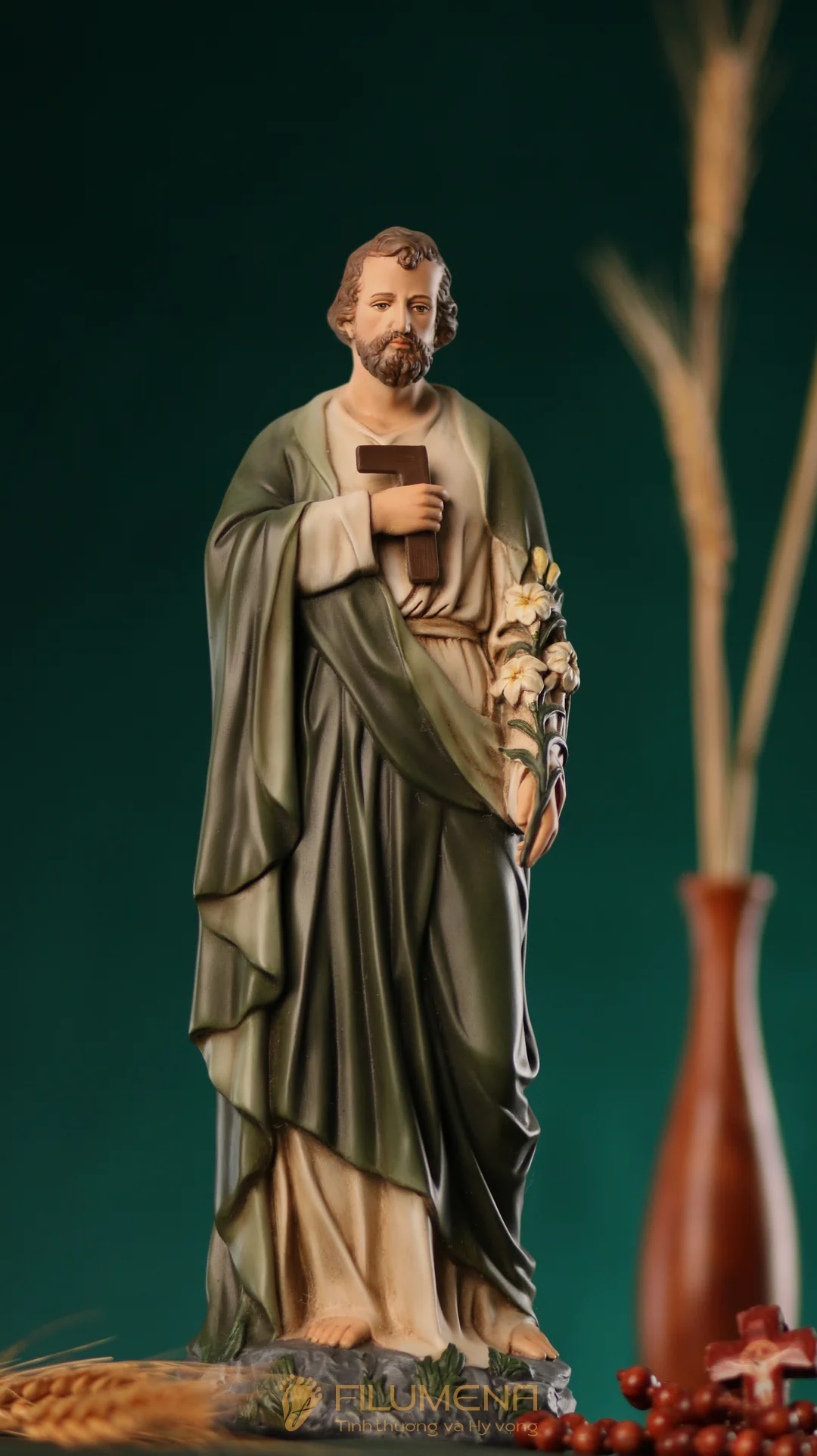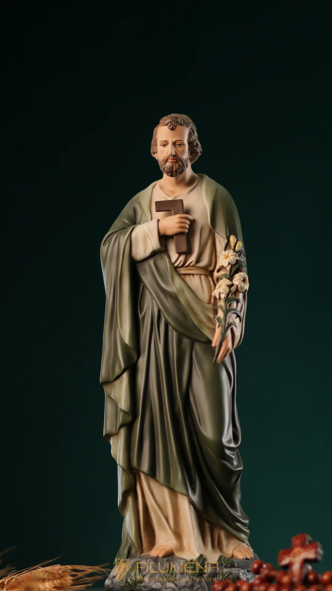 Tượng Thánh Giuse Thợ cao 30 cm, 40 cm với áo màu xanh ô-liu