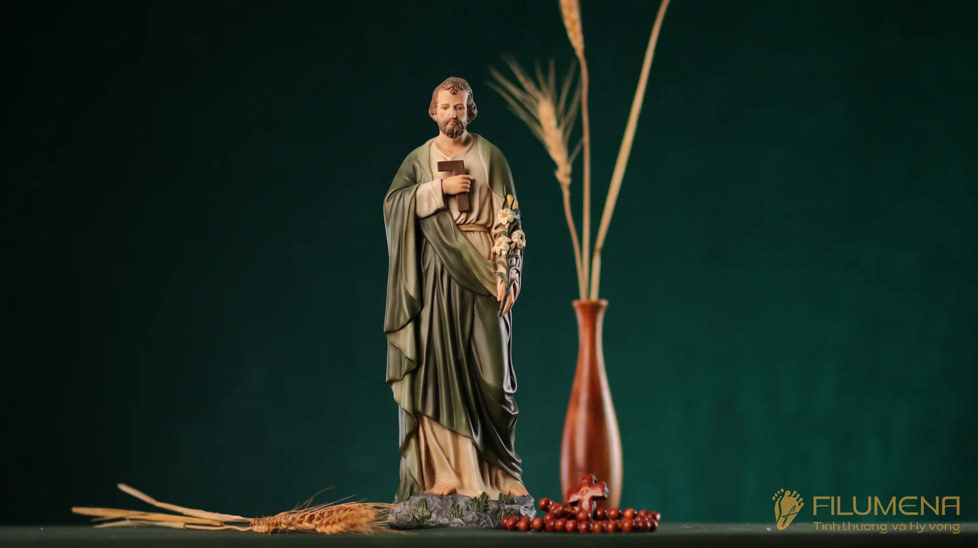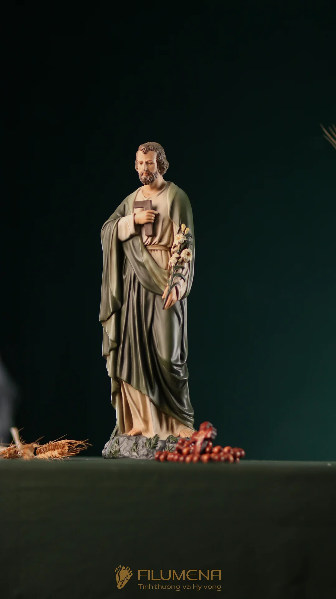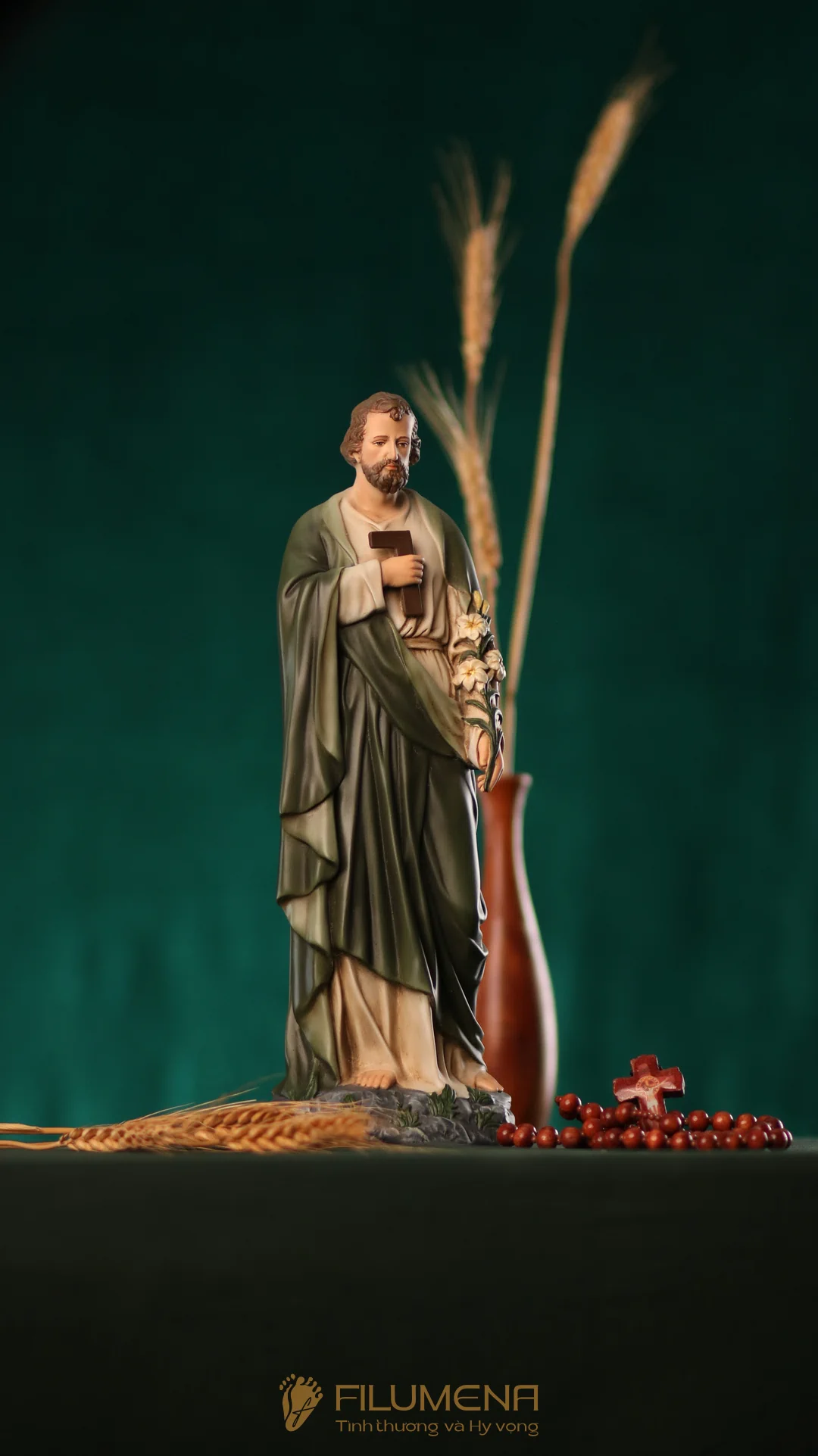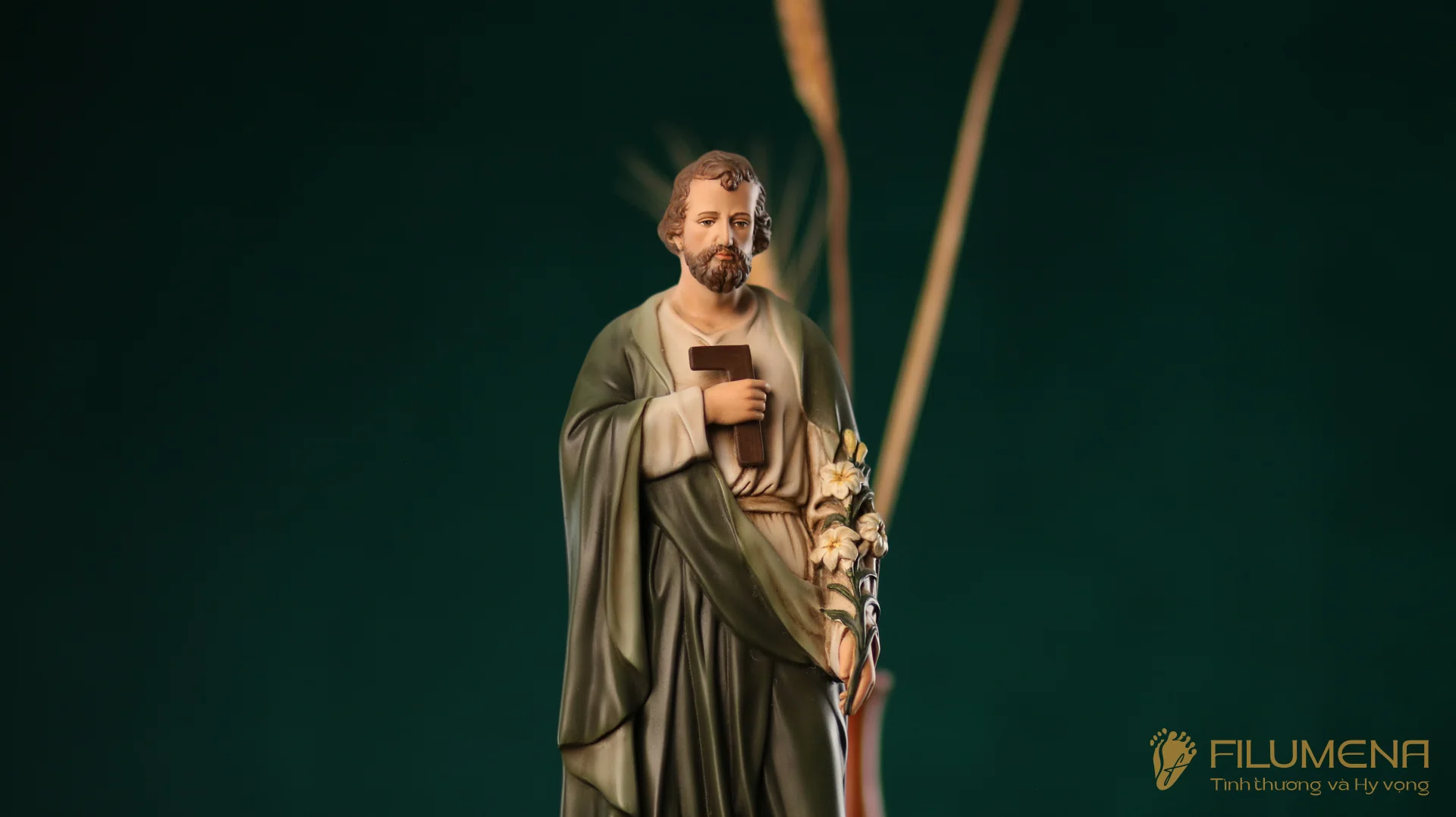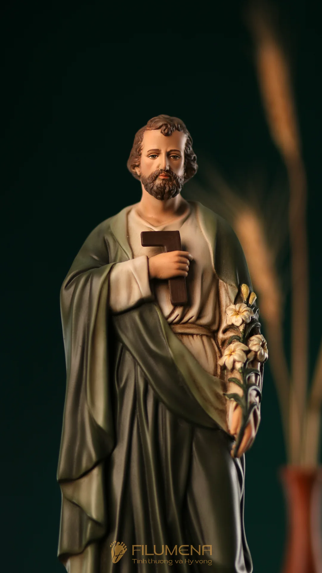 Tượng Thánh Giuse Thợ cao 30 cm, 40 cm với áo màu xanh ô-liu